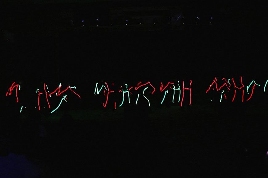 充滿了現代氣息的熒光舞《MH》。全場矚目下,黑暗中不斷閃現的M、H,令人眼花繚亂但已嫻熟無比的跑位,全部由業務二部和產品管理部的同事們私下N+1次排練的成果。