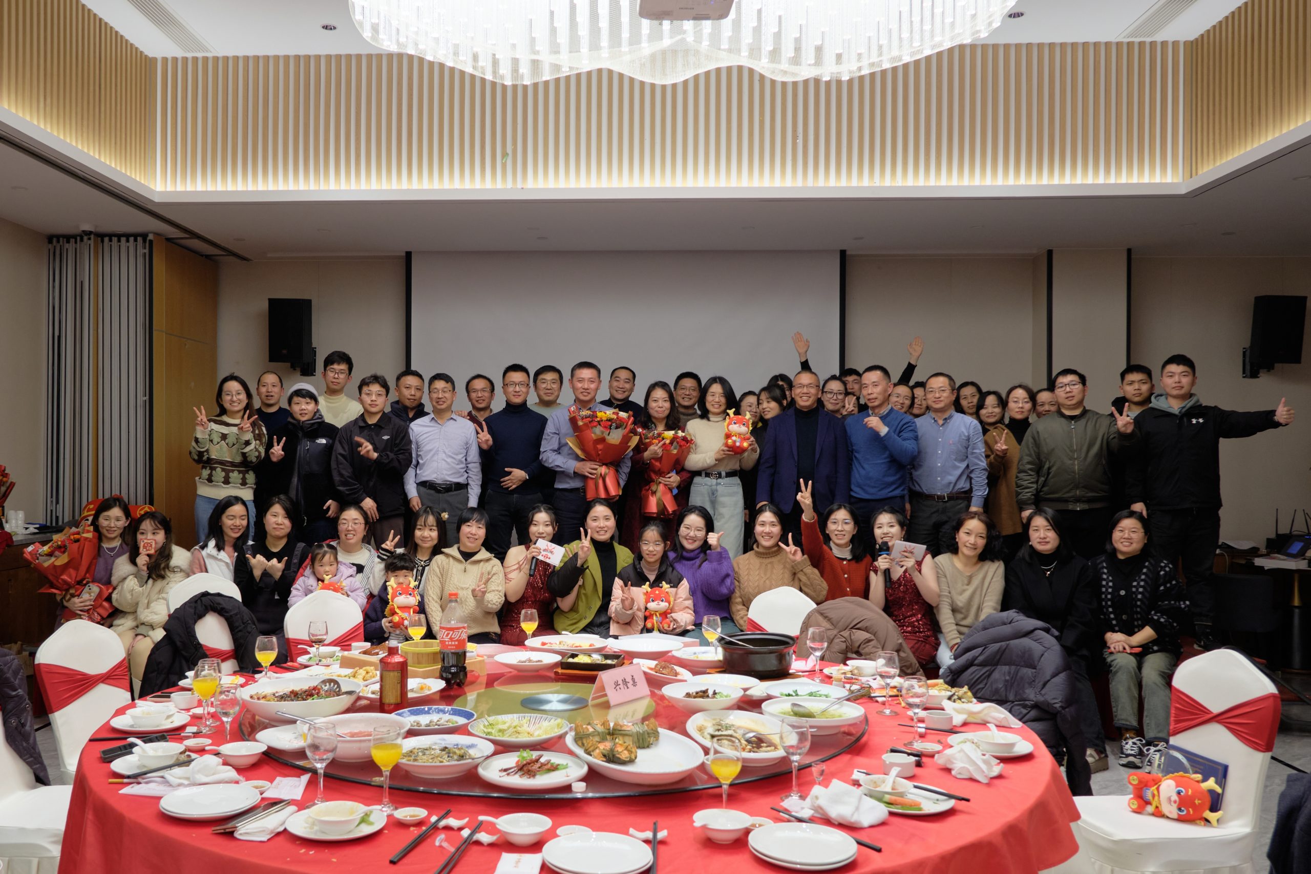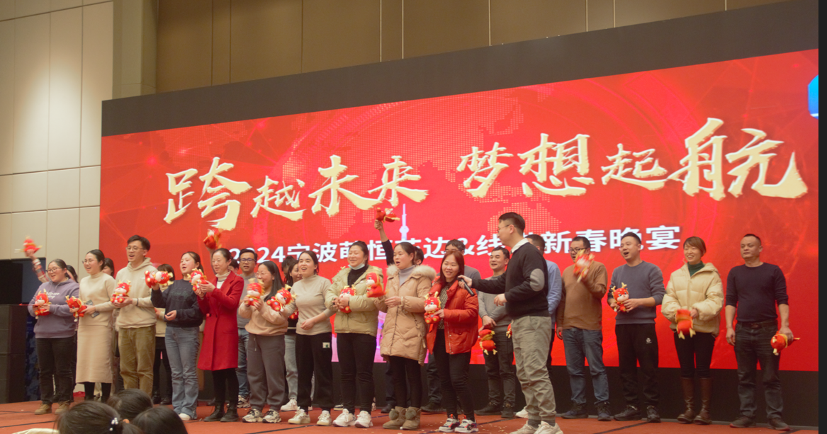 玉兔辭舊春華啟,龍騰新春氣象新。為感謝全體同仁在過去一年的辛苦付出和大力支持,萌恒各事業部組織了精彩紛呈的新春晚宴,共有790名小伙伴參加盛會,共饗美食,歡度時光。 國貿事業部 2月5日晚,“龍騰四海 共創輝煌”國貿新春晚宴在2024新春拜年視頻中拉開序幕。俊男靚女的主持搭檔,洋溢著青春與活力,讓人眼前一亮、耳目一新。晚宴伊始,國貿事業部總經理陳總向國貿全體成員致以新春賀詞,為萌恒家人送上滿滿的祝福,并與全體同仁共同舉杯,慶賀新年。 晚宴歌舞俱全,一曲《倔強》帶來了晚會的第一個小高潮,贏得掌聲雷動。這首歌不禁讓我們想起了拼搏和奮斗的日子,不對自己妥協,不向困難低頭。爵士舞表演《Dreams come true》好評如潮,讓人意猶未盡,展現了國貿文體協會的風采。《365個祝福》&書法表演,將福氣灑滿了整個宴會廳。才藝展示環節,歌唱秀、舞蹈秀讓人應接不暇,引來歡呼連連。 游戲互動環節,大家都踴躍參與。一人勝出,全桌獲獎的游戲規則,將大家的凝聚力和團結心體現得淋漓盡致。猜歌名,唱歌曲,你不會,我來唱!大家一起齊心協力,集思廣益。在福龍戲珠環節,三個可愛龍龍的T臺秀引來陣陣歡笑,福龍奮力接取萌兔拋出的珍珠的樣子更是抓住了所有人的眼球。這也寓意著龍年接過兔年的交接棒,相信我們在新的一年會更加充滿激情和活力,奮勇爭先,拔得頭籌! 激動人心的抽獎環節在萬眾期待下如約而至,中獎者喜笑顏開,更有幸運兒表示這是自己第一次中獎,非常感謝公司讓自己體驗到中獎的滋味。而沒有中獎的小伙伴也全部受到了陽光普照,晚宴后的每個人都滿載而歸。 花邊&線帶制造事業部 早在2月2日,花邊&線帶制造事業部就舉辦了“跨越未來,夢想起航”年會活動。活動開始,實業總經理徐總進行新春致辭。徐總向大家表達了最真摯的感謝和最美好的祝福,隨后跟全體同仁一起舉杯,喊出新年快樂,晚宴正式開始。 本次晚會不僅準備了精彩的游戲——蒙眼吃香蕉與瓜子接龍,還有大屏幕滾動抽獎、獨唱表演,以及驚喜福袋。游戲環節大家積極參與,團隊配合,默契十足;抽獎環節滿懷期待,中獎者無比欣喜,臉上洋溢出燦爛的笑容;獨唱環節掌聲不斷,大家沉浸其中,意猶未盡,節目一波接一波;最后每桌都在尋找驚喜福袋,并收到了驚喜感滿滿的禮物。   海外事業部 海外事業部也在2月2日舉辦了新春年會&晚宴。年會開始,海外事業部副總經理高俊強進行新年致辭,表達了希冀與祝福。一系列獎項的頒發,讓大家在鼓掌聲和祝賀聲中共享喜悅與榮譽。一首大合唱《一路升花》奠定了晚會和樂的氛圍基調,而塞內加爾駐外同事和本地員工的傳統服飾走秀讓我們感受到了別樣的風土人情,現場傳來陣陣喝彩聲。你畫我猜的接龍游戲,擊鼓傳花的互動項目,幸運大抽獎,高潮迭起。晚宴也在歡聲笑語和意猶未盡中結束。 剛剛過去的2023年,是公司承前啟后、繼往開來的一年。雖然經歷了三年的疫情,遭遇了整個行業的寒冬,但是我們并沒有被困難嚇倒,而是通過拼搏和努力,見證著公司規模的不斷壯大,業績的穩健發展。而這一切離不開每一位在崗位上發光發熱的萌恒人。2023年已成過往,2024年我們繼續加油!