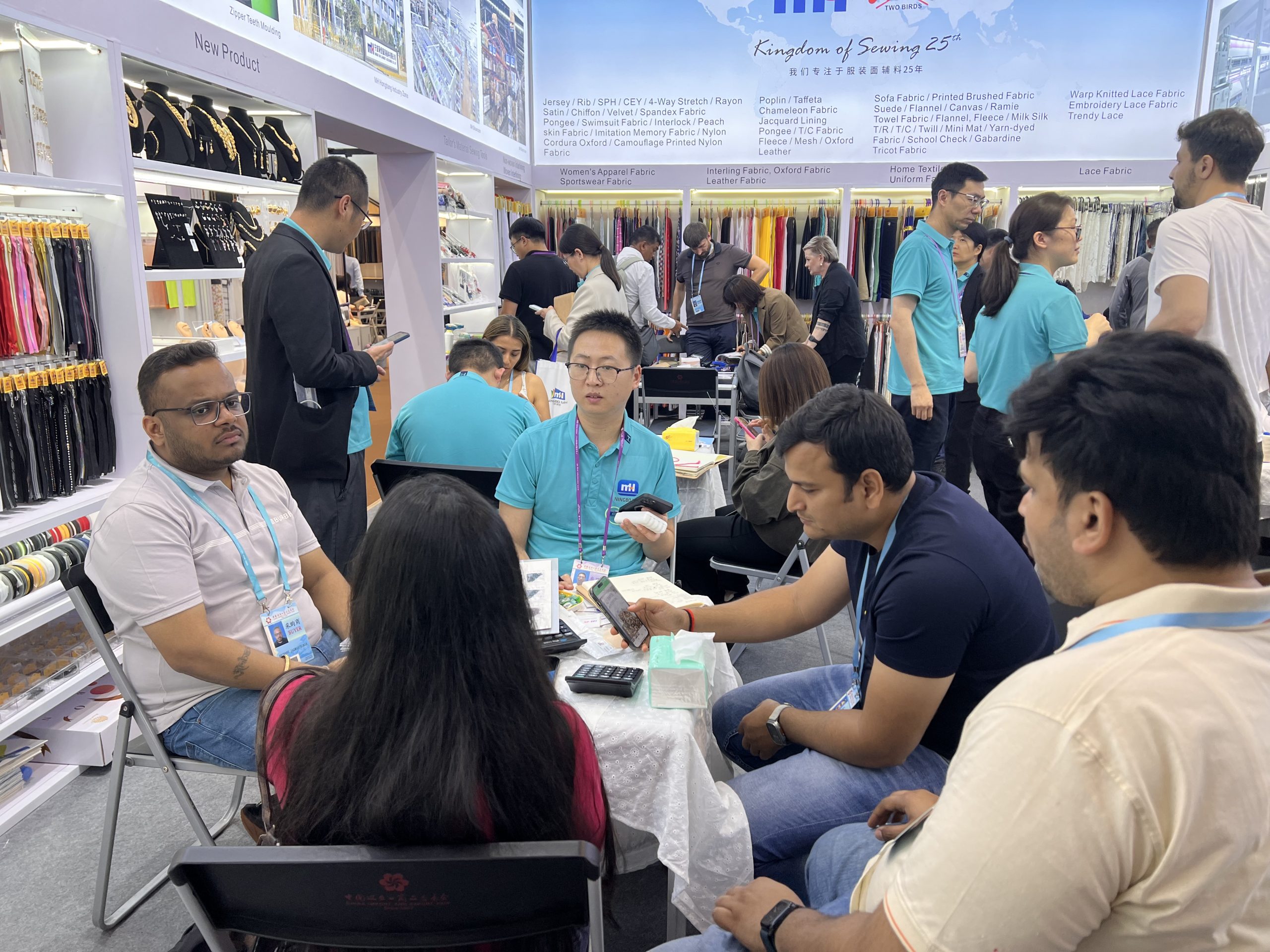 為期五天的展會,展館內(nèi)人流如織,現(xiàn)場人氣爆棚。公司此次共有10個攤位,分別是二期家居用品1個攤位、禮品2個攤位,三期紡織面輔料6個品牌攤位、塔斯線業(yè)1個攤位,國貿(mào)事業(yè)部派出23名業(yè)務人員和貨源人員參展。基于優(yōu)勢的攤位位置和琳瑯滿目的產(chǎn)品,我司幾乎是整個展館內(nèi)人流量最多的攤位,并且非常榮幸地迎來了江北區(qū)、北侖區(qū)商務局領導的蒞臨指導。
