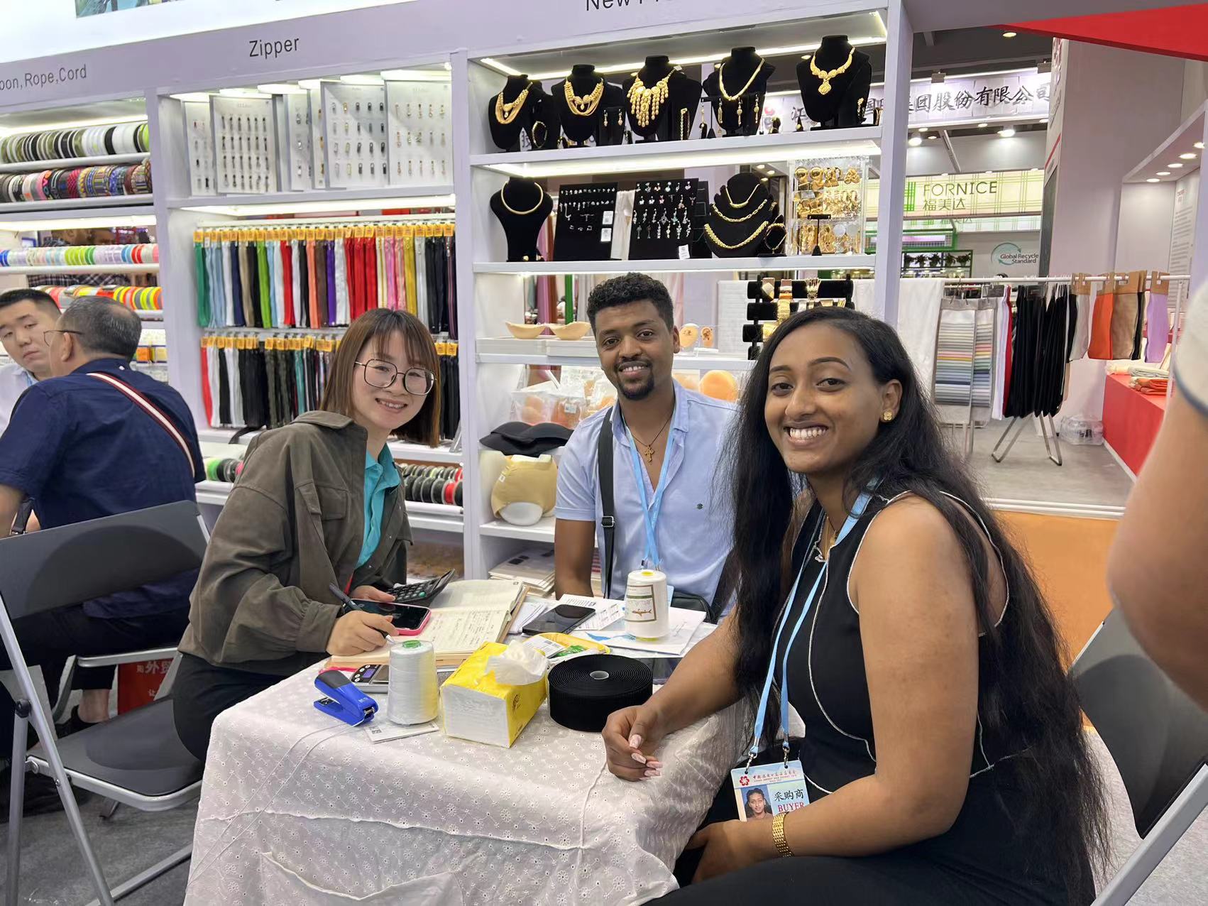 展會期間,我們共接待了世界各國的客商945名,客戶群體更豐富,客戶數(shù)明顯高于上屆廣交會。產(chǎn)品方面,二期家居攤位的展示盒類、環(huán)保產(chǎn)品,禮品攤位的特殊帶類獲得了客戶的青睞;三期紡織面輔料攤位琳瑯滿目的面輔料全品類吸引了新老客戶眼球,客戶絡繹不絕,人聲鼎沸。業(yè)務員耐心引導,并為客戶講解各類產(chǎn)品。他們專業(yè)的素養(yǎng)和熱情的服務,讓客戶感受到了用心,也贏得了客戶信任和好評。